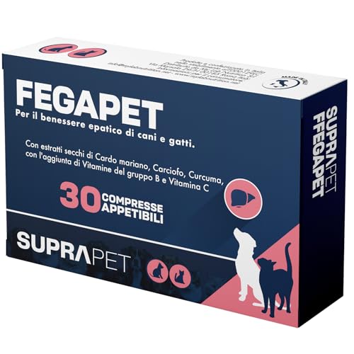 - Fegapet di Suprapet è un mangime complementare in compresse appetibili per cani e gatti a base di estratti secchi di Cardo mariano, Carciofo, Curcuma, con l’aggiunta di Vitamine del gruppo B e Vitamina C utile per il fisiologico benessere epatico (fegato e vie biliari) dell’animale.