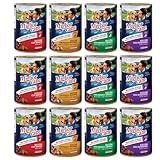 - Varietà di gusti: Questa confezione contiene 12 scatolette di cibo umido per cani in 4 deliziosi gusti assortiti: 3 pollo e tacchino, 3 manzo, 3 selvaggina e 3 manzo e ortaggi.