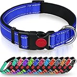 AUAUY Collare Cane, Collare per Cani in Nylon Riflettente, Regolabile Collari, Anello Doppia D, Fibbia Staccabile, Morbido e Imbottito, per Cani di Taglia Piccola, Media e Grande (Nero-S)