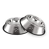 LUMITERRA 2 Pack Ciotole per Cani in Acciaio Inox, Lotole con Base in Gomma Antiscivolo, Facile da pulire, Ciotola per cani di piccola, media e grande tagliae, Può contenere acqua e cibo.